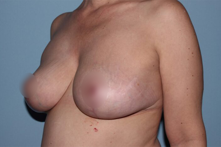 This 42-year-old woman had silicone gel breast implants placed 14 years ago. She had a CAT scan to investigate another unrelated issue and was found to have a bilateral breast implant rupture. This was considered a “silent rupture” as she had no symptoms. At the time of surgery, Dr. Lyle found completely disrupted breast implants, but they were contained within the implant capsule (intracapsular rupture). The implant material was removed safely within the capsule. The patient had had a prior mastopexy, so this was revised, and smaller implants were placed. The patient was very pleased with the improvement and had peace of mind knowing that her breast implant material had been removed.