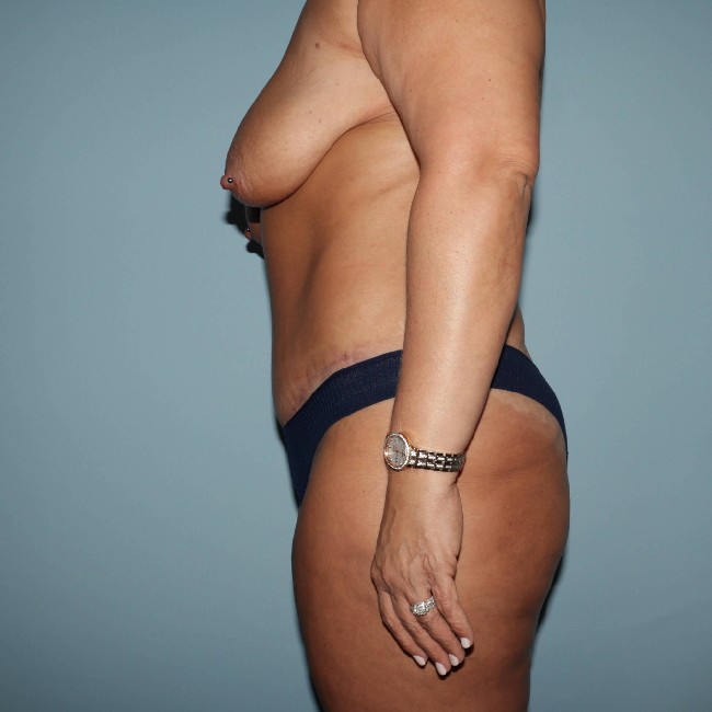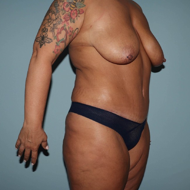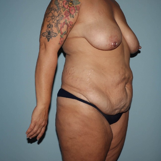 There has been a surge popularity of bariatric surgery with remarkable results and effective means of massive weight loss. This 45-year-old woman underwent a gastric sleeve 5 years ago and lost over 90 pounds in just over a year and a half. She was left with significant loose skin and pannus and wished to have improvements in her abdomen and flanks. Her body mass index (BMI) was currently just over 30, and she had been refused by some surgeons because of her weight. Dr. Lyle will do abdominoplasty in patients with a BMI between 30 and 35, provided they are otherwise very healthy without significant health problems.