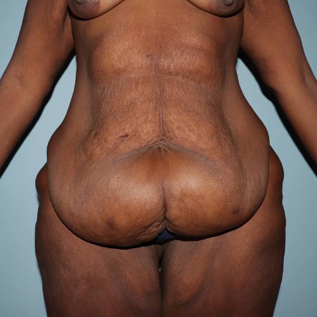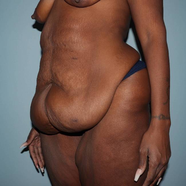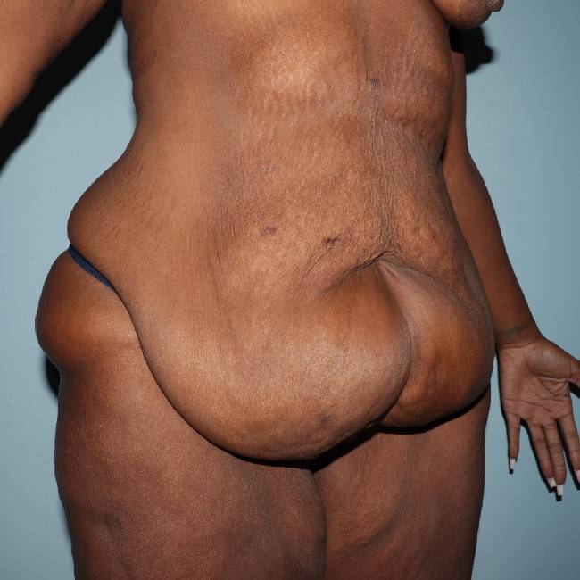 Weight loss surgery can result in massive amounts of weight loss. This 36-year-old woman had bariatric surgery several years ago. At one time, she was well over 400 pounds. She lost over 200 pounds. She presented to Dr. Lyle with a desire to improve her abdominal pannus and loose skin around the hips. At that time, she weighed just over 200 pounds. She lost an additional 15 pounds prior to her surgery.