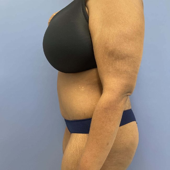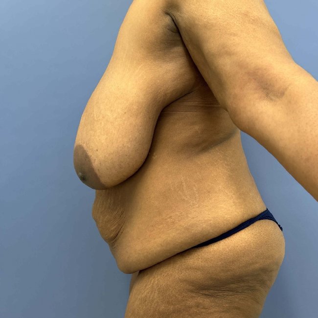She underwent a body lift with some liposuction and fat transfer to the buttocks as well as a brachioplasty. Specimen weight was 13 lbs.