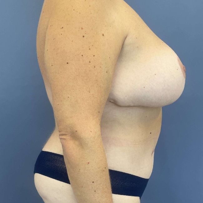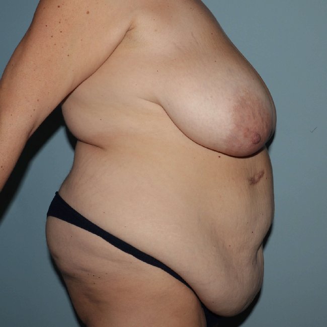 She underwent an initial breast reduction and abdominoplasty with liposuction as an outpatient.