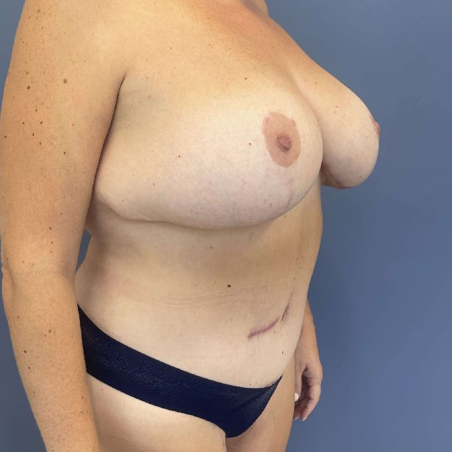 This 39-year-old woman had been using semaglutide medication for weight loss with some success. She was able to lose about 50 pounds, but was having difficulty making much change in her shape. She consulted with Dr. Lyle, who recommended continued efforts at weight loss and was able to get her body mass index down to about 33. She did not have other major health problems other than a history of ileostomy (temporary bypass of her intestine with a surgical formation of an ostomy) owing to Crohn’s disease.