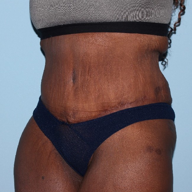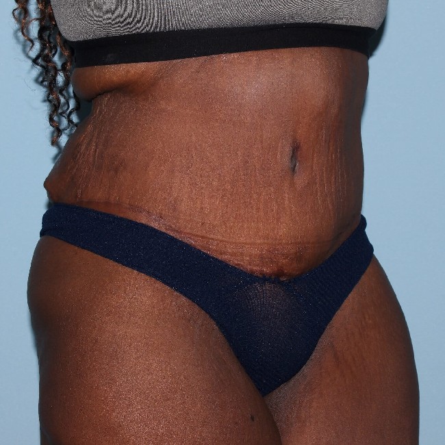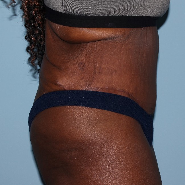 This patient had an extended abdominoplasty, and although she could have had a circumferential, she had very good results with a more limited procedure. Typically, these patients will still have skin excess, which manifests as a dogear deformity. This can typically be treated with a future, more limited procedure such as a buttock lift.