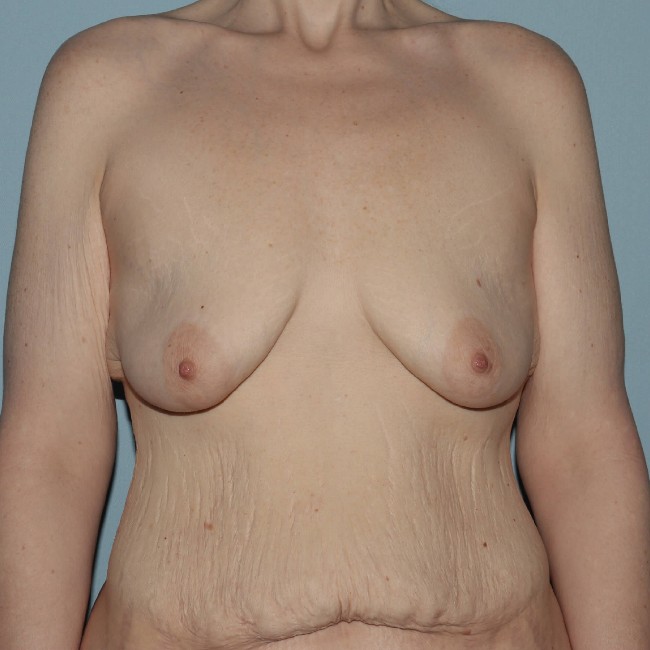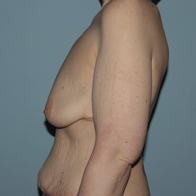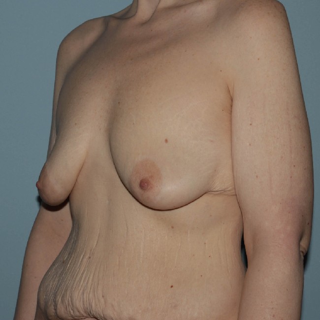 This 42-year-old woman had a prior gastric bypass and lost over 150 pounds. She was very concerned about the appearance of her breasts, and although other areas also bothered her, she chose to undergo an augmentation mastopexy.