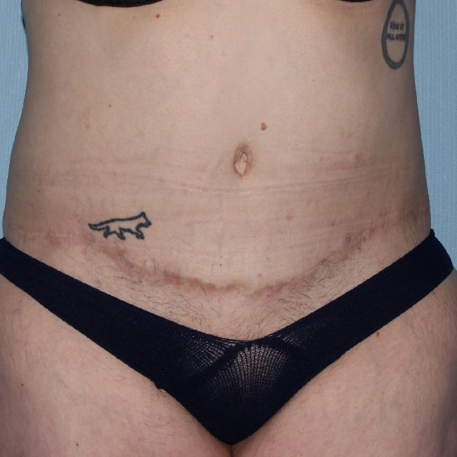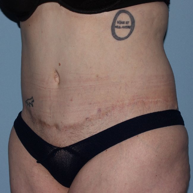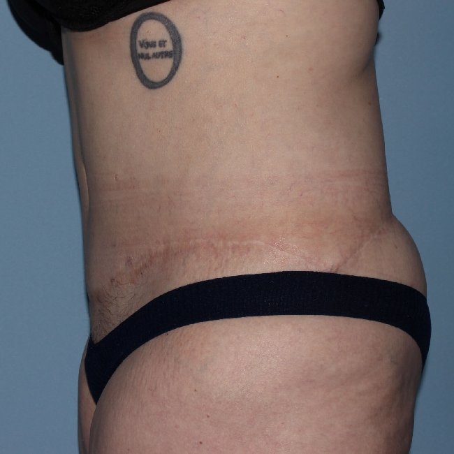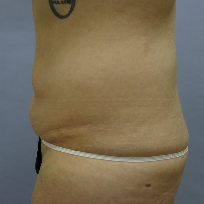 This is a 47-year-old woman who underwent a gastric bypass 8 years prior to surgery. She had a 100-pound weight loss and now has a body mass index of 25. She had some loose skin on her abdomen that primarily bothered her with some extension laterally, and desired improvements not only in the abdomen but also in the flank areas.