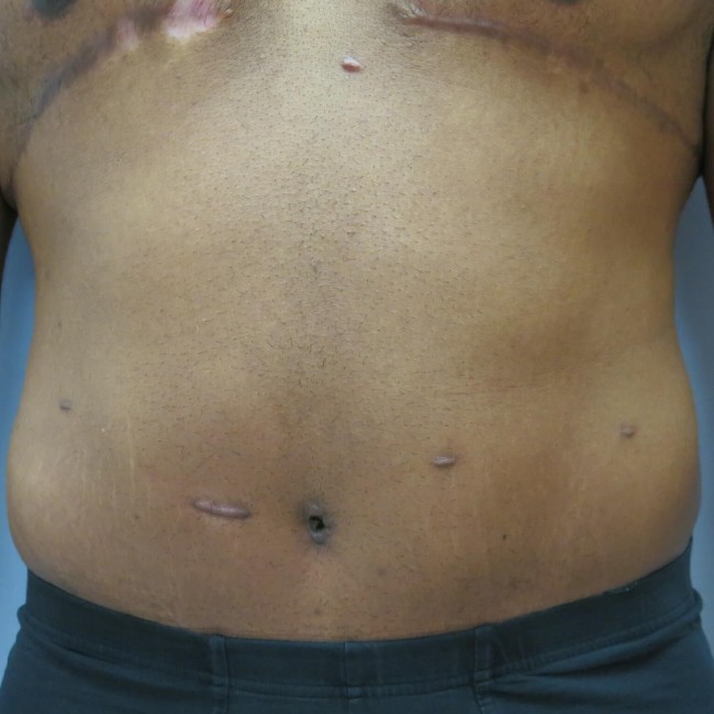He underwent an abdominoplasty with the removal of skin and excess tissue. He did not need a diastasis repair as he had very good muscle anatomy.