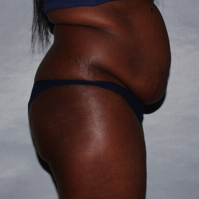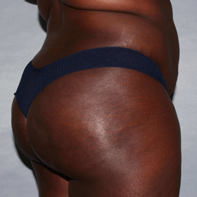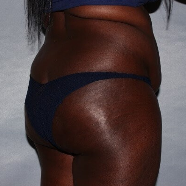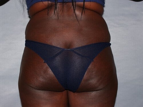 This 33-year-old woman sought improvement in her buttock appearance. She wanted fat removed from her abdomen and flanks and a better shape of her buttocks.