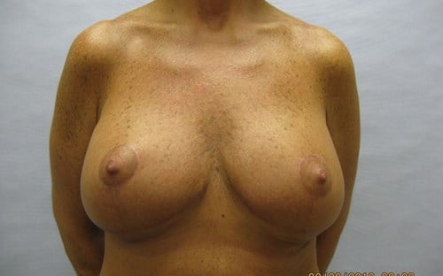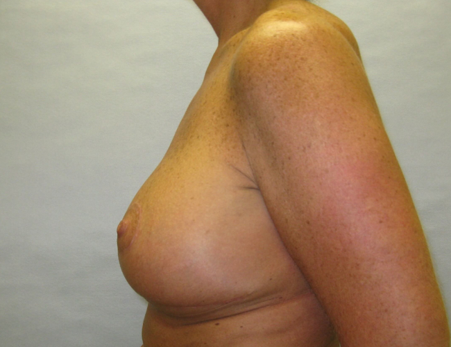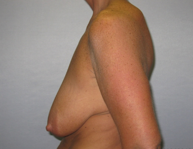 This 44-year-old woman has lost weight and noted significant droopiness of her breasts. She was tall – nearly 6 feet and found that her nipples were falling to her belly button. She desired a breast lift and some enhancement from her size 40C to a D cup.