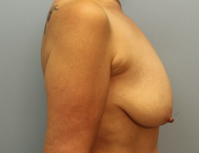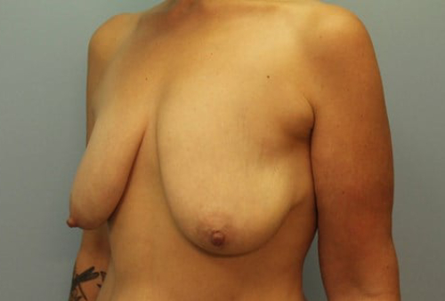 This 47-year-old woman underwent a gastric sleeve operation with 120-pound weight loss. She was much more comfortable in her slimmer frame, but had concerns about her loose, sagging breasts. She desired fuller, lifted breasts.