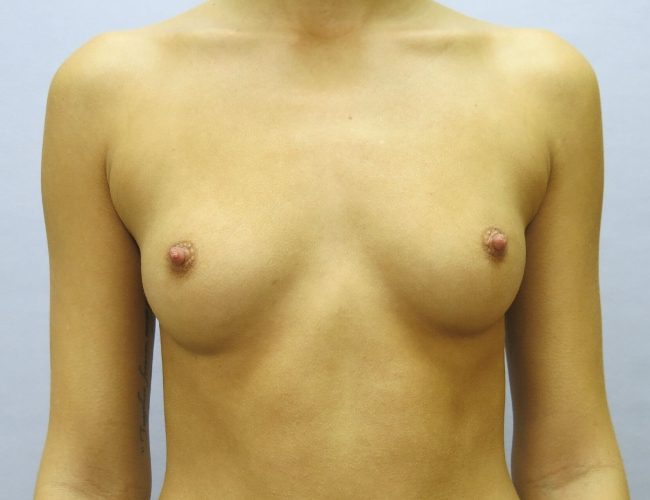 This 21-year-old woman desired breast augmentation. She was interested in going from an A cup to a large C cup.