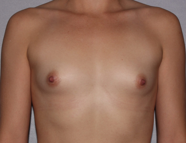 This is a 24-year-old woman who desired an increase in her very small breast size from an A cup to a full C cup. She had a preoperative consultation with Dr. Lyle, and aftera  full discussion of options, chose submuscular silicone gel breast implants.