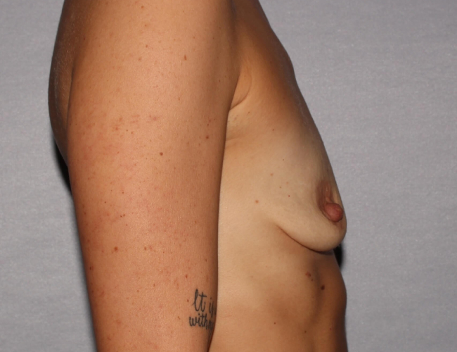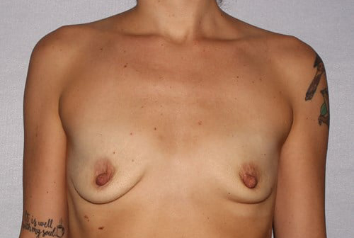 This 34-year-old mother of 4 children noted a progressive decline in her breast volume after each pregnancy. She describes her breasts as being deflated and noted to be sagging, wrinkling, with near complete loss of breast volume. She desired restoration of her original breast volume, perhaps even somewhat larger since she has a ways been somewhat small-breasted. She had several consultations with other plastic surgeons but ultimately chose breast augmentation with silicone gel breast implants with Dr. Lyle.