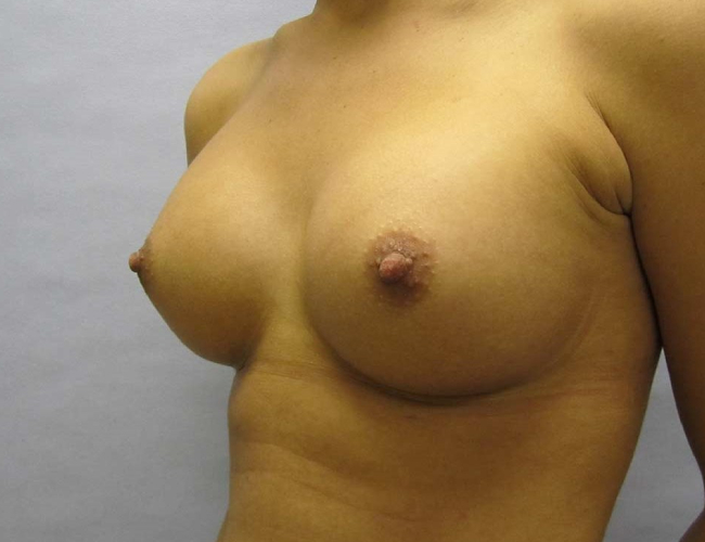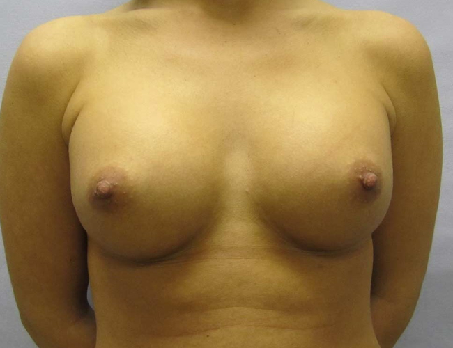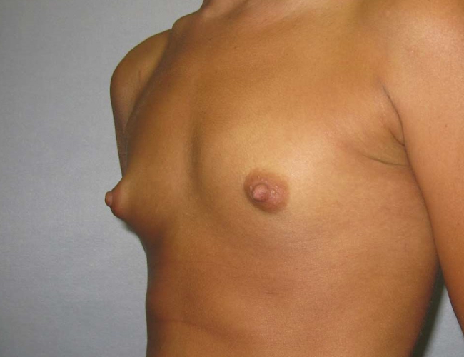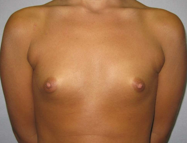 This 20-year-old woman had very small A cup breasts and desired augmentation to a C cup.