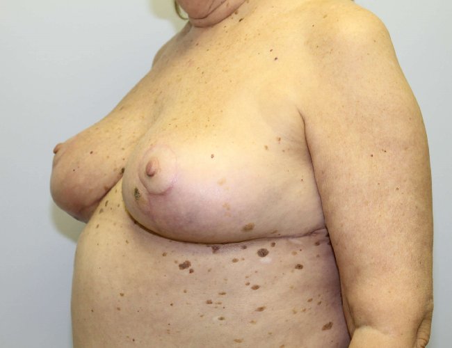 This 67 year old woman had saline breast implants placed by another surgeon 20 years ago. She never felt comfortable with them and as she aged and gained weight- she felt her breasts were too large. She also had some capsular contracture causing discomfort. She originally had 450cc Textured implants placed above the muscle. She wanted them out with no replacement. Dr. Glenn Lyle removed them with capsules and performed a breast lift with the remaining breast tissue. This can be a challenging procedure because blood supply to the nipple may be compromised by prior breast implants. The patient did very well and was happy to have her implants removed. She was very pleased with her smaller lifted breasts.