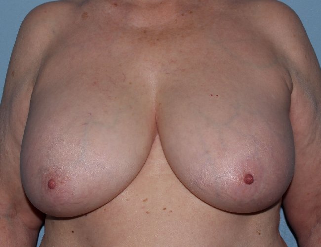 Women who contemplate breast implant removal whether it is for breast implant-related problems, implant rupture or deflation or desire for smaller breasts are concerned about the postoperative appearance of their breasts. There are many factors that determine breast appearance after explantation. Certainly the size of the breast implant and its volume relative to the native breast is a critical factor. It is important to know the implant size to help counsel the patient about what to expect. In many patients who have had that their breast implants for many years and even decades, the implant volume is not known and there is an expected degree of guesswork. Additional factors include Weight gain, breast aging and ptosis or breast drooping. Many patients do fine with explantation alone and are happy with the breast appearance. In situations where Breast ptosis is present, it will be made worse with explantation and breast lifting at the time of explantation is a good option. Patients with saline implants can have a preoperative deflation which may demonstrate their potential expected appearance. This 70-year-old woman was found to have a ruptured right breast implant during mammography which is not a common way of discovering rupture. She underwent en bloc capsulectomy with implant removal bilaterally. Her implants had been in for 28 years. Her postoperative appearance was very acceptable to her and she did not desire breast lifting or re-augmentation.