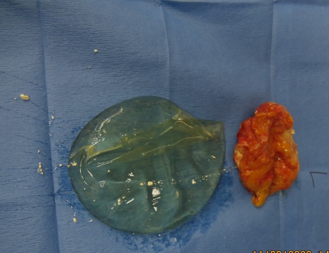 There are a variety of reasons for breast implant removal. Most common are contracture and implant rupture. Many woman have ruptured implants without realizing it. Often, capsular contracture will be the first sign that the implant is leaking. Physical exam is not very reliable in establishing ruptured gel implants. Mammography is also not very sensitive. MRI remains the best diagnostic modality. This 57 year old woman had 35 year old implants . Surprisingly, they remained fairly soft for most of her adulthood. She had a mammogram which did reveal rupture. If a mammogram reveals rupture- it usually is pretty significant as it is not the best diagnostic tool so findings are obvious She desired explantation without replacement. She wondered how she would look postoperatively. This is an obvious concern of woman undergoing removal. Although it is difficult to know fully what the effect of removal will be, an experienced plastic surgeon should be able to advise patients about predicted appearance. This patient had gained weight over the 35 years that she had implants and was not too concerned about size. After explantation, she was quite happy with her breast appearance. If patients have large implants relative to breast tissue and have drooping- breast lift and some fat grafting can be performed. In many cases, breast tissue is adequate to support a reasonable size post lifting. When post op outcome is unpredictable, it is better to wait before doing more surgery.