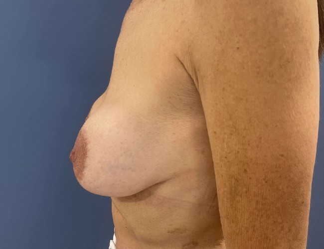 The patient desired to be about the same size if possible and also did not want a breast lift ( although Dr. Lyle recommended one) but did agree to a periareolar mastopexy to reduce the size of the areola.