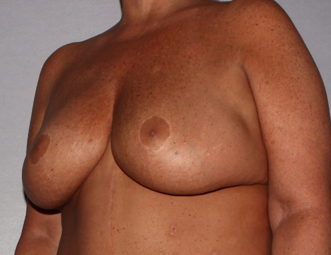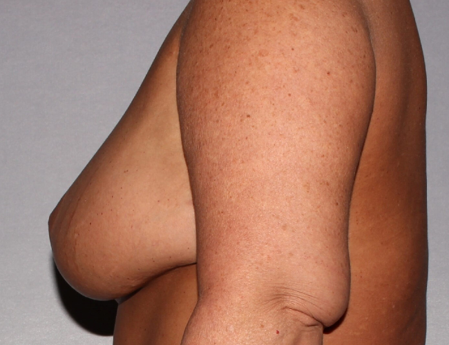 This is a 46-year-old woman who had previously undergone a gastric stapling but did not lose much weight, and finally lost significant weight through dietary measures and exercise. She was left with multiple areas of sagging skin. She is still somewhat overweight but happy with her current weight and desired improvements in her breasts and abdomen, and several other areas. She was very concerned with what she described as a “side boob” and desired the lifting of her breasts.
