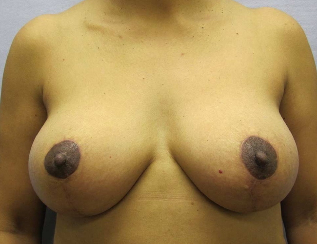 This 48-year-old woman noted drooping of her breast as she aged. She also did not like her large nipples, which she couldn’t hide even with bras.
