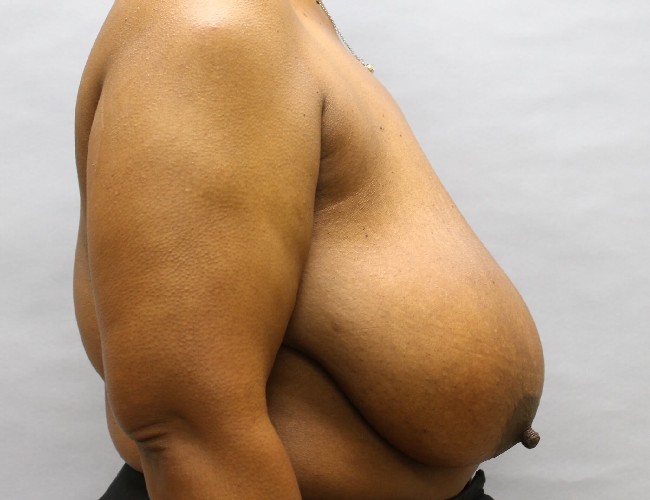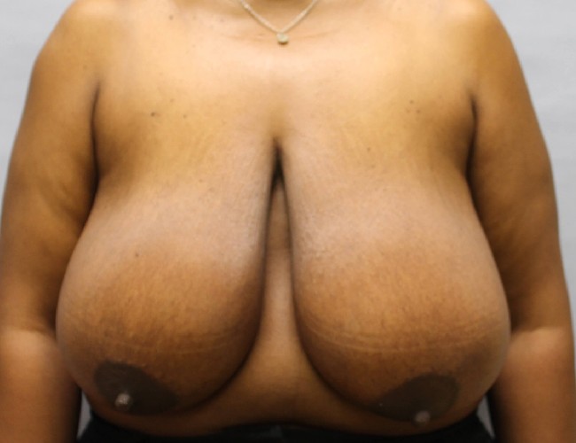 This is a 47-year-old woman with a long-standing history of neck and back pain related to her very large breasts. She wore a size 40 K-cup brassiere. She had exhausted medical management, including nonsteroidal anti-inflammatories, muscle relaxants, physical therapy, and weight loss. Her large, pendulous breasts prevented her from exercising as much as she wished and made it difficult for her to maintain conditioning.
