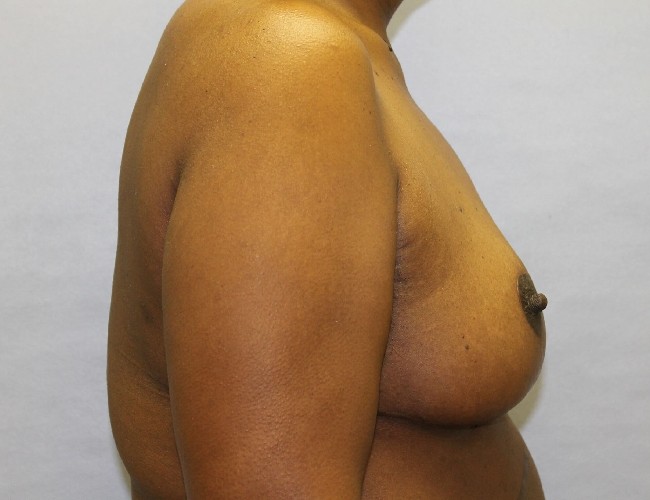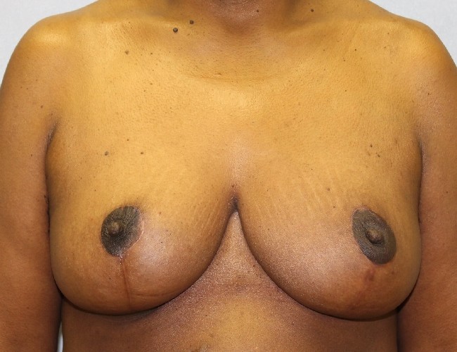 She underwent an inverted T-type breast reduction with the removal of 1200 grams from the right breast and 1335 grams from the left. This was a reduction of over 5.5 pounds of breast tissue.