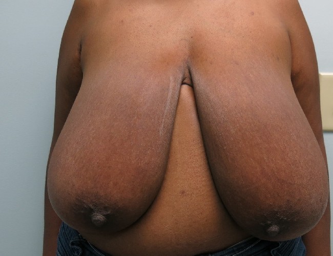 She had near immediate improvement in her symptoms with the excess weight removed from her breasts. Breasts this large present a surgical challenge. In many cases, the viability of the nipple can be threatened because of the enormity of the breast size, where blood flow may not be adequate to support the viable nipple areola complex. Traditional techniques with pedicled approaches are much more difficult, and in many cases, these patients require free nipple grafts. This patient had a successful superior medial pedicle breast reduction with full preservation of the nipples. Experienced plastic surgeons have a repertoire of techniques to treat each patient according to their anatomy. But no one breast reduction is the same, and approaches need to be individualized.