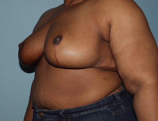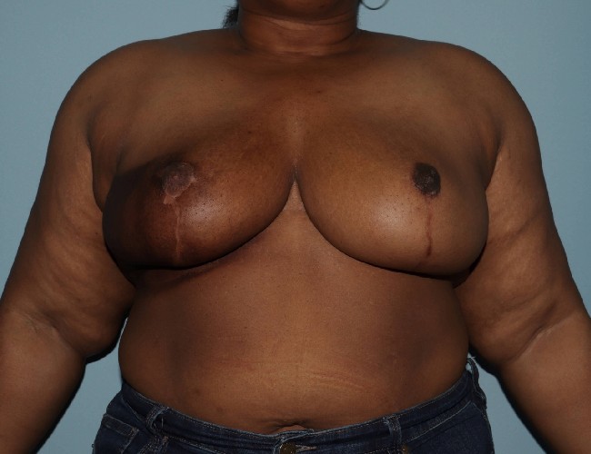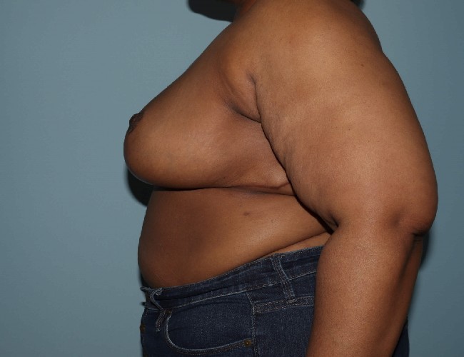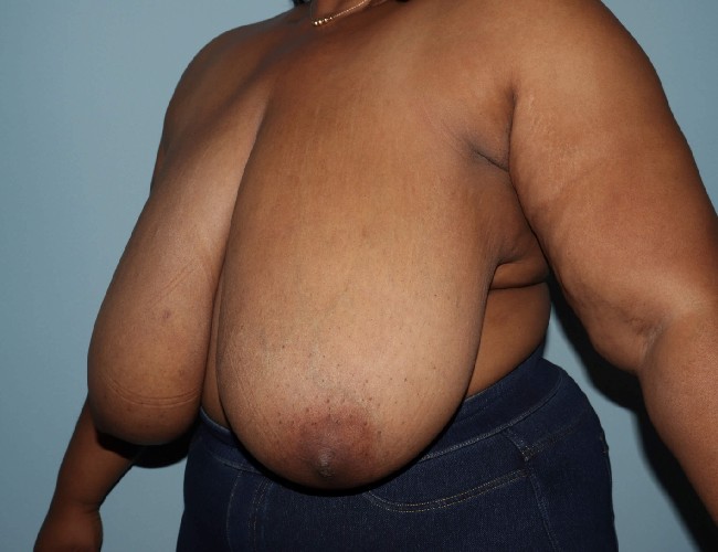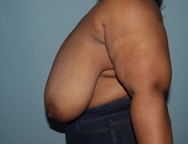 This 46-year-old woman had very large breasts that were causing her problems. She could not get coverage from insurance as it required significant weight loss, which she was unable to accomplish. She saw Dr. Lyle, who felt she was a reasonable candidate for breast reduction, and although weight loss was recommended, it would unlikely change the size of her breasts. Dr Lyle does not accept insurance.