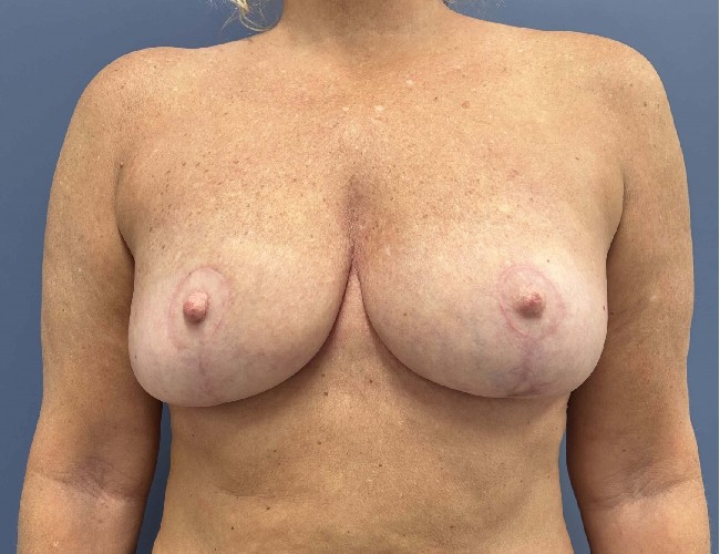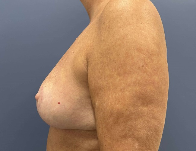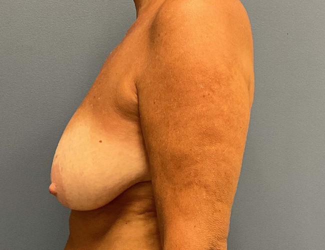 This 55-year-old woman was very active playing tennis and other outdoor activities, and was unhappy with her sagging breasts and had a small breast reduction removing about 200 grams (less than 1/2 pound) per side.