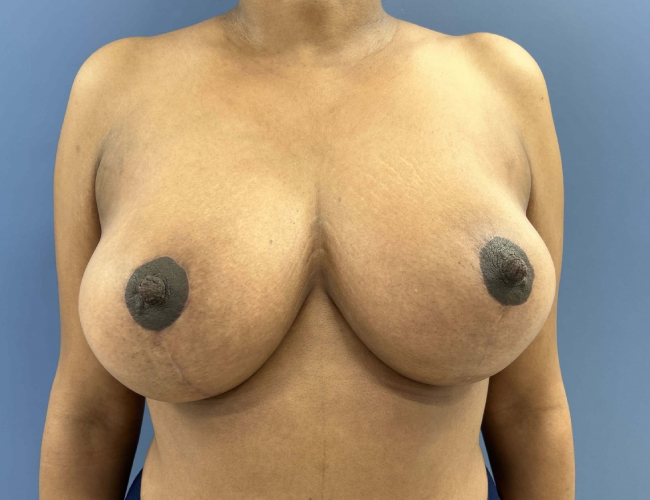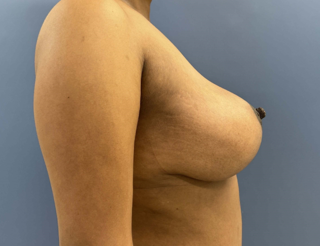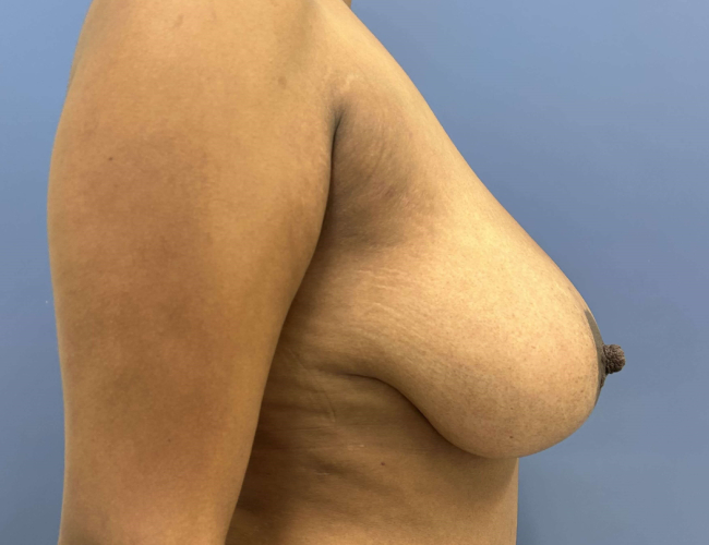 The patient was quite pleased with the improvements and maintained sensation of the nipples and minimal change in breast volume. She had a better upper pole appearance.