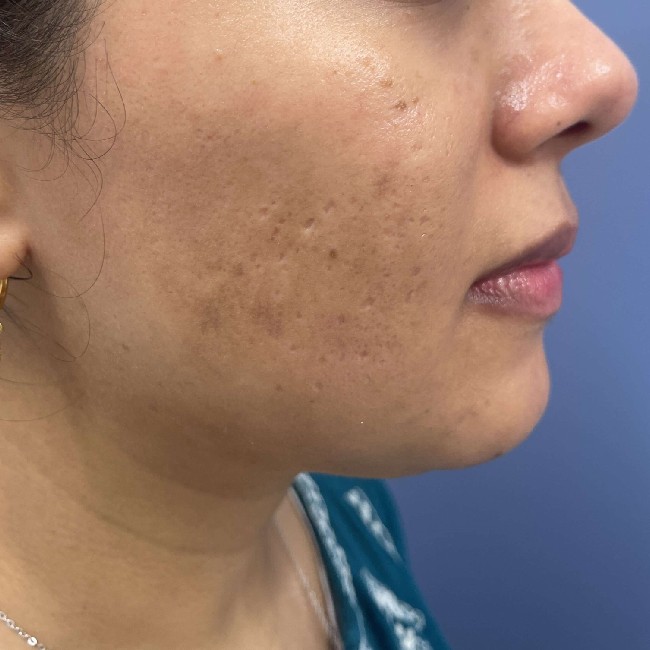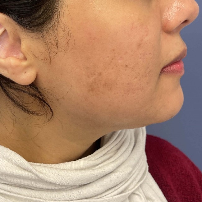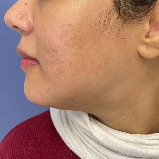 She had a nice improvement with a smoother surface of her cheeks after treatment.