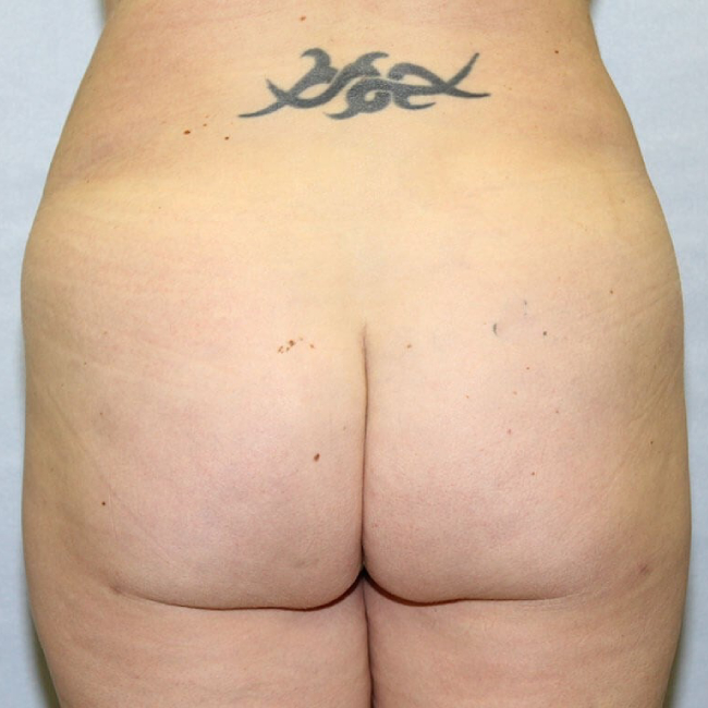 Sometimes, in fat transfer to the buttocks (BBL), it is not as important how much fat is transferred but where it is removed. This 36-year-old woman has always had a block-like appearance of her waist, which has made her buttocks have no contour. She did not want a large buttock- just wanted better shape.