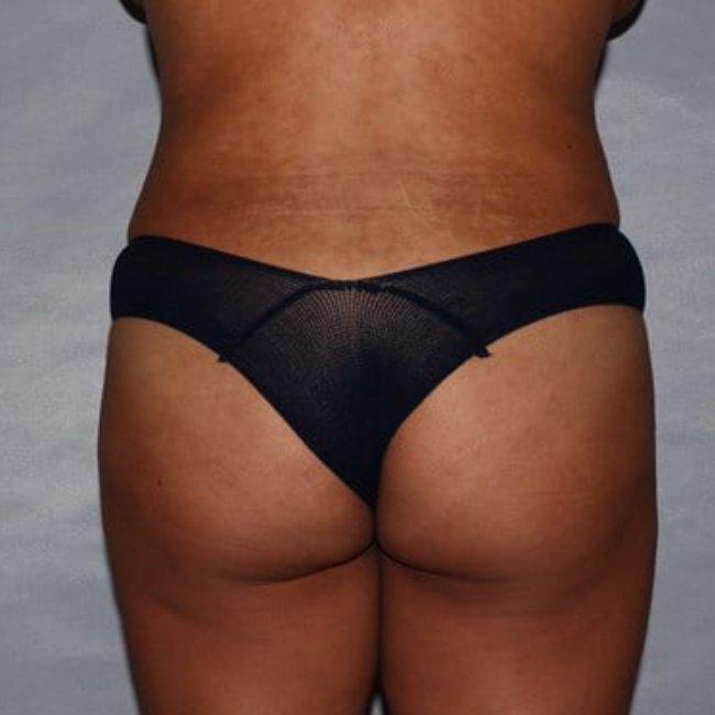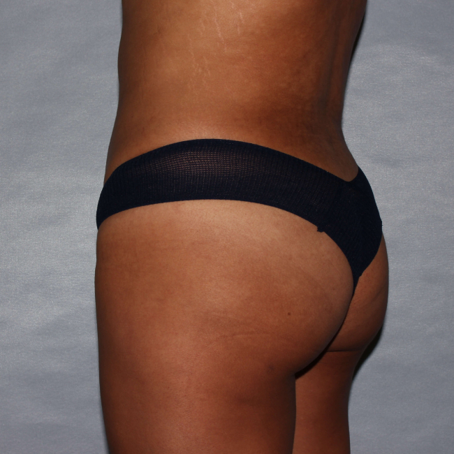 This 21-year-old woman wanted improvements in buttock shape without significant enlargement. She felt that her flanks were wider than her buttocks, so she sought improvement with liposuction.