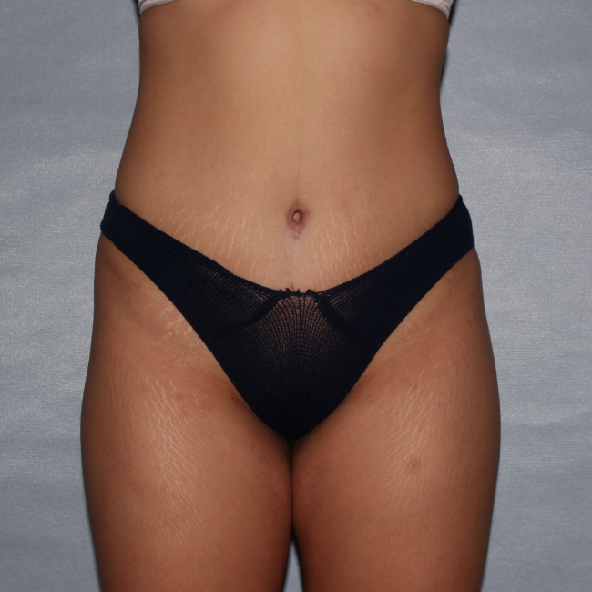 She was pleased with the outcome and felt her buttocks looked better despite no fat transfer. Her umbilical scar was improved, although it needed a steroid injection to make it better. Liposuction is a frequently requested procedure. It is not as straightforward as it appears. Careful contouring requires experience and the appropriate tools. This patient had power-assisted liposuction, but this still breaks up fat mechanically and suctions the loose fat out. Final results take over 3 months to become apparent. Other non-invasive modalities, such as CoolSculpting be effective for smaller deposits. Dr Lyle uses Vaser liposuction, which can target fat more superficially and may help tighten skin a bit more than standard liposuction. It uses ultrasonic energy to break up fat and is appropriate for more sculpting of fat rather than simple debulking.