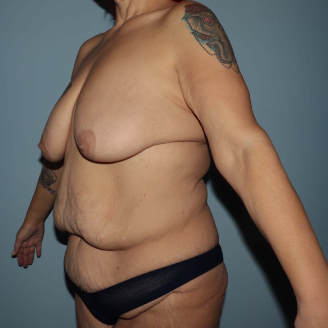 This 52-year-old woman had undergone over 100 pounds of weight loss after a gastric sleeve procedure performed 8 years ago. She had long desired body contouring, but she was diabetic and also a smoker. Ultimately, she had better control of her diabetes with weight loss and better hypoglycemic pharmaceutical choices, and was non-insulin-dependent. She was a smoker and was counseled to quit smoking prior to surgery.