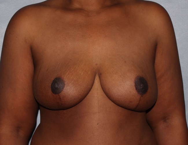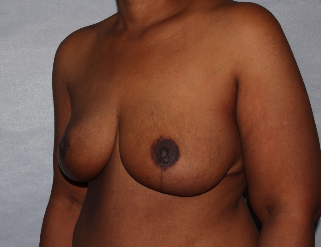He performed a breast reduction, which is always more challenging when working with radiated tissue. The patient also wanted a tummy tuck at the same time. She was otherwise very healthy, so a combined breast reduction and tummy tuck was done (Mommy Makeover).