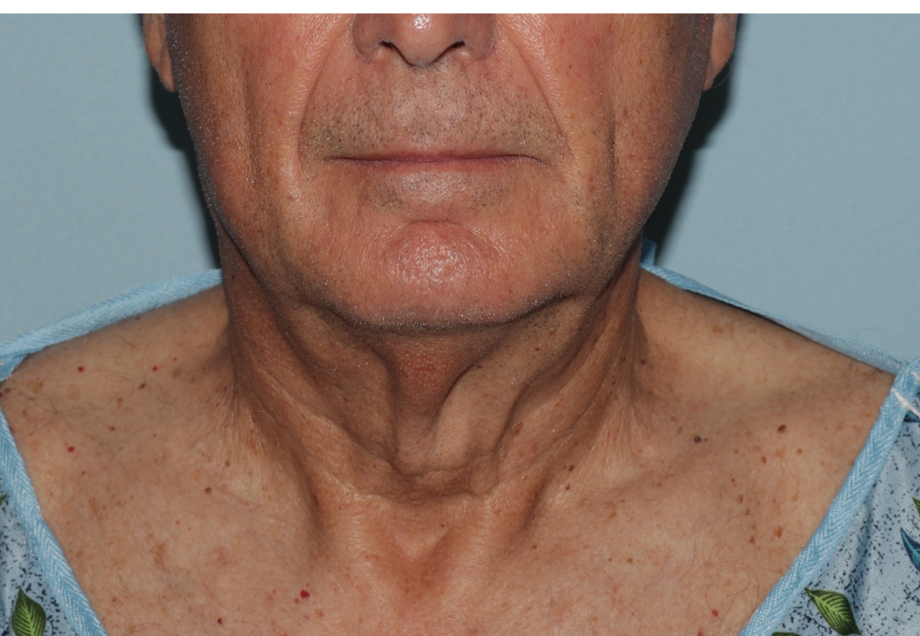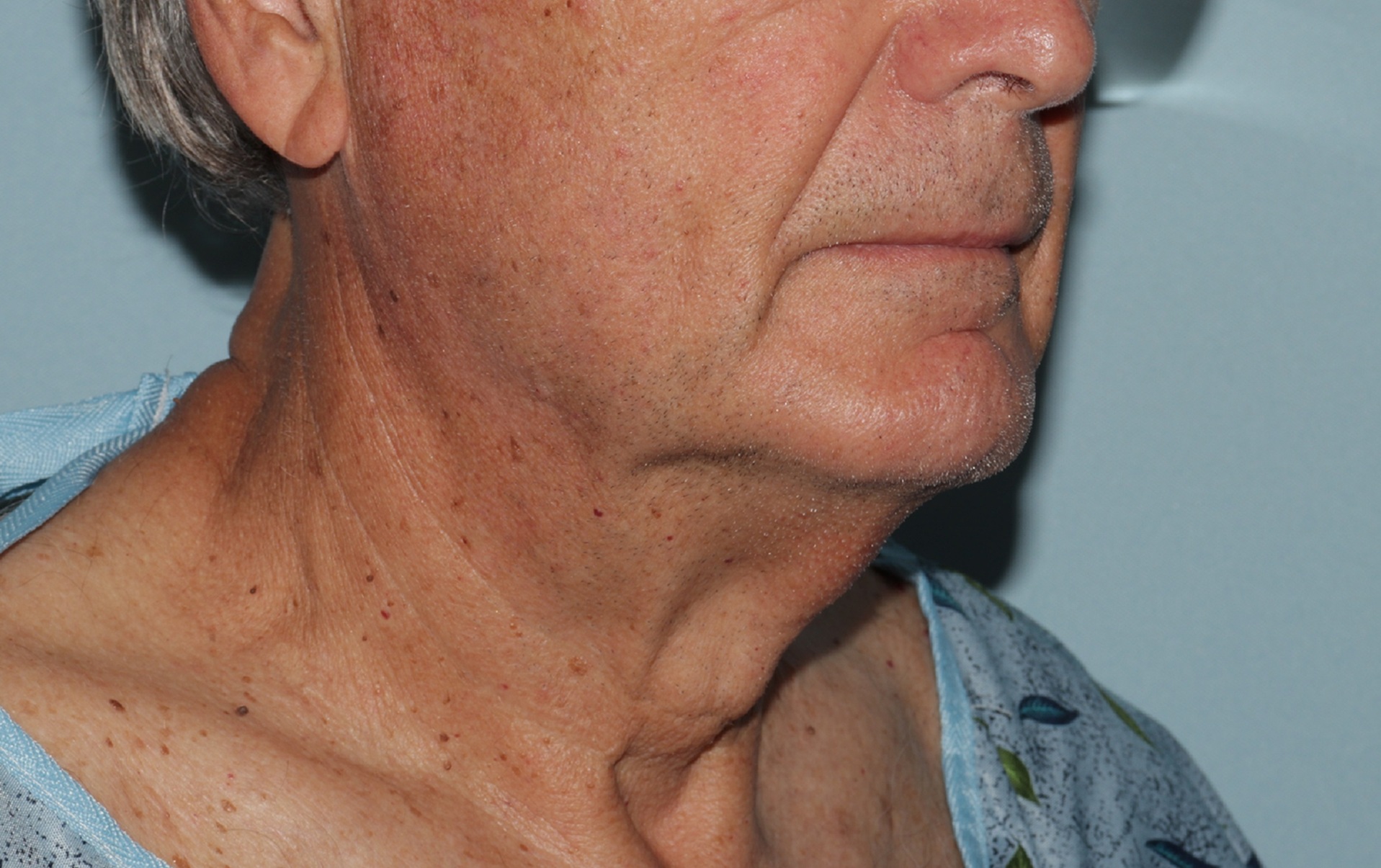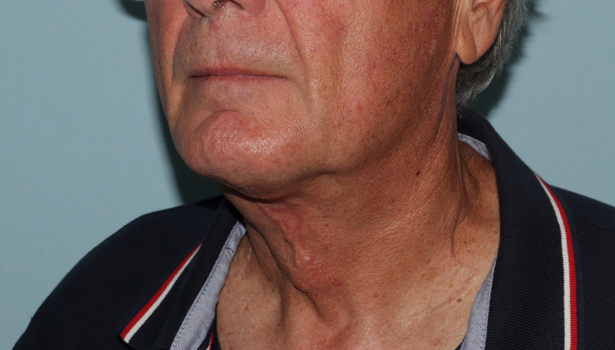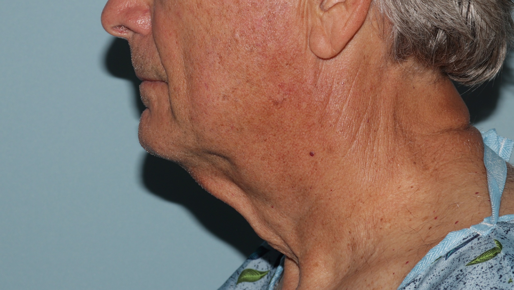 This 74-year-old gentleman wished to have improvement in his loose skin of the neck. He has no interest in a facelift. Noninvasive measures would unlikely make much difference. Dr. Lyle discussed a direct neck lift which involves removing the skin of the mid portion of the neck directly. Although this does result in a scar, it usually heals pretty well and since in men this skin is hair-bearing, can be hidden while it heals with some beard growth.