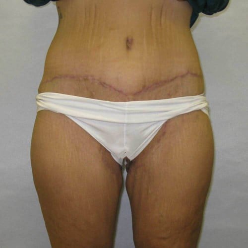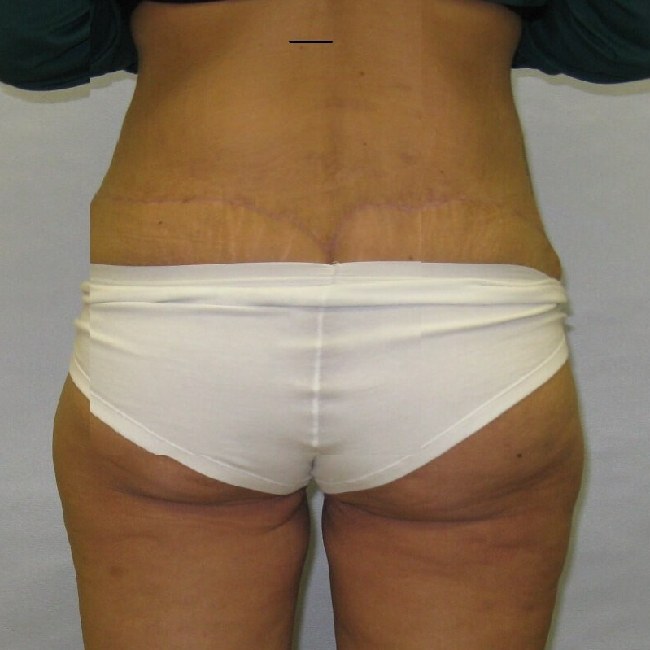 He performed a lower body lift (circumferential abdominoplasty) and medial thigh lift. During surgery, she had 14 lbs of tissue removed. Her recovery took about two weeks before she was able to go back to work and about 6 weeks before she resumed major exercise.