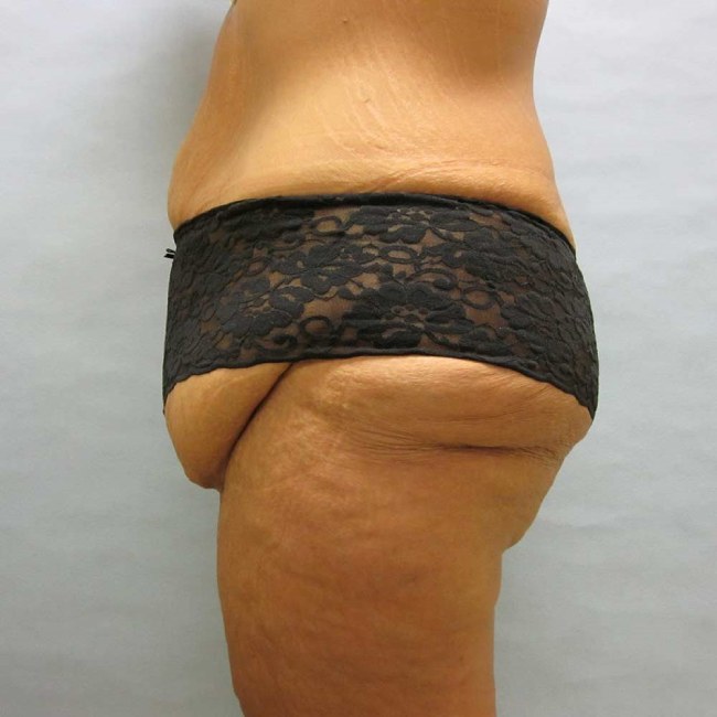 This 39-year-old woman once weighed 355 lbs. She underwent a gastric bypass and lost 190 lbs. She still had lots of loose tissue in her abdomen and thighs, and consulted with Dr. Lyle about options.