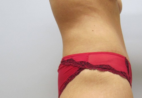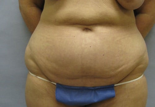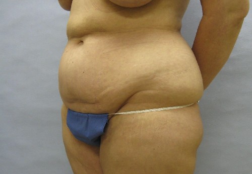 She underwent a “mommy makeover” with liposuction of the abdomen and flanks and abdominoplasty as well as breast lifting. Because of her prior heart issue- she stayed in the hospital overnight but had no post op problems. Over the next year , she lost an additional 35 pounds and have a thigh lift.