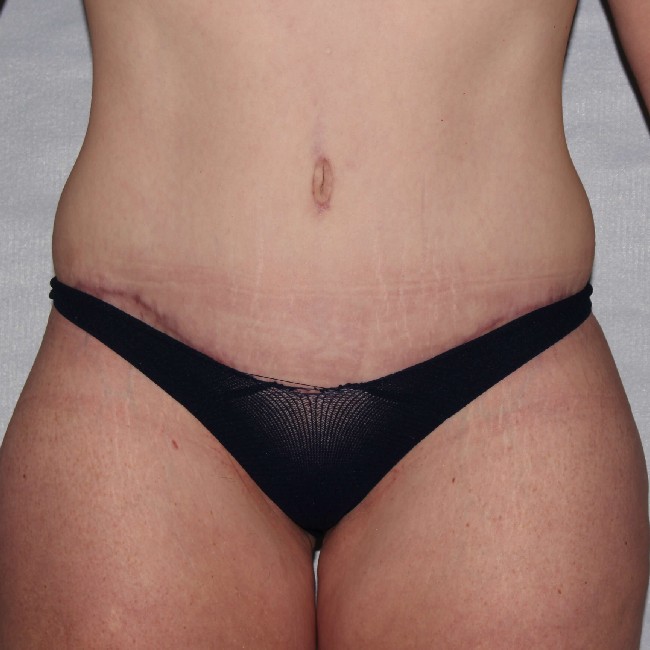 She underwent an abdominoplasty with liposuction of her thighs at Lyle Plastic Surgery & Aesthetics Center by Dr. Glenn Lyle.