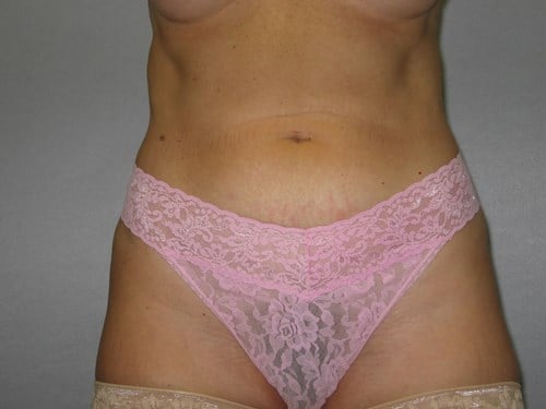 She did not have enough laxity to warrant a full abdominoplasty, so a mini tummy tuck was performed. This involved a small amount of lower abdominal skin removal with repair of her laxity of her abdominal wall with a rectus plication.