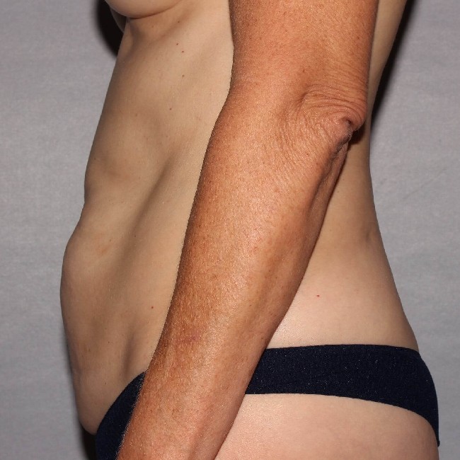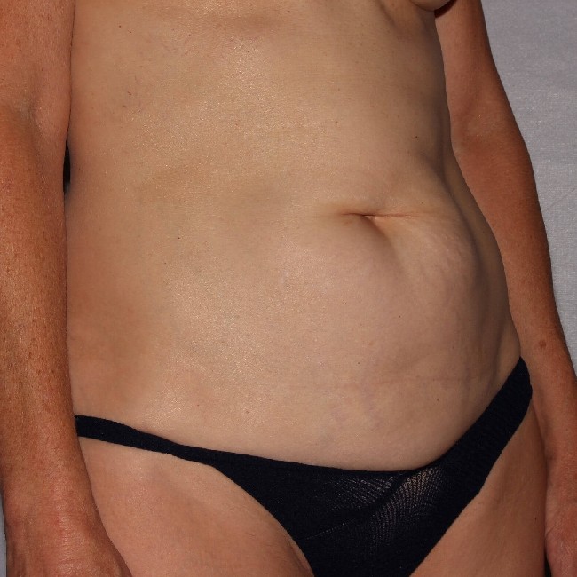 This 56-year-old woman had two children born over 20 years ago. She had weight fluctuations throughout much of her post partum life but began a diet and exercise program and attained a healthier weight. Her problem was loose skin and a lax abdominal wall that seemed to belie her new found fitness. She did not feel comfortable in workout clothes and tight fitting dresses.