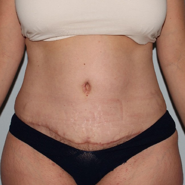 Dr Lyle performed a full abdominoplasty with repair of her diastasis and direct repair of a small epigastric hernia. The C section scar was removed, the majority of stretch marks were removed and her diastasis was fixed. Her scars are being treated with silicone based creams and massage. Abdominoplasty results in significant lower abdominal scars which usually can be hidden by most two piece bathing suits although adjustments in style are necessary to cover the scars. Most patients would never wear a two piece before the tummy tuck so are delighted to be able to shop for them. Scar treatments include silicone based scar creams, gels and adhesive strips which need to be used for at least 3- 6 months. Some laser treatments may help reduce redness and thickening. Ultimately, it takes a full year (sometimes longer) for scar maturation. While scars never go away, they do fade and become softer.