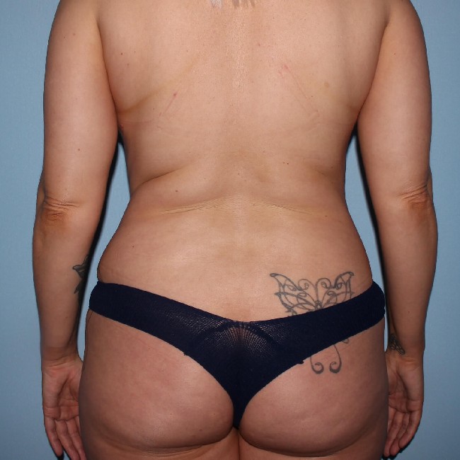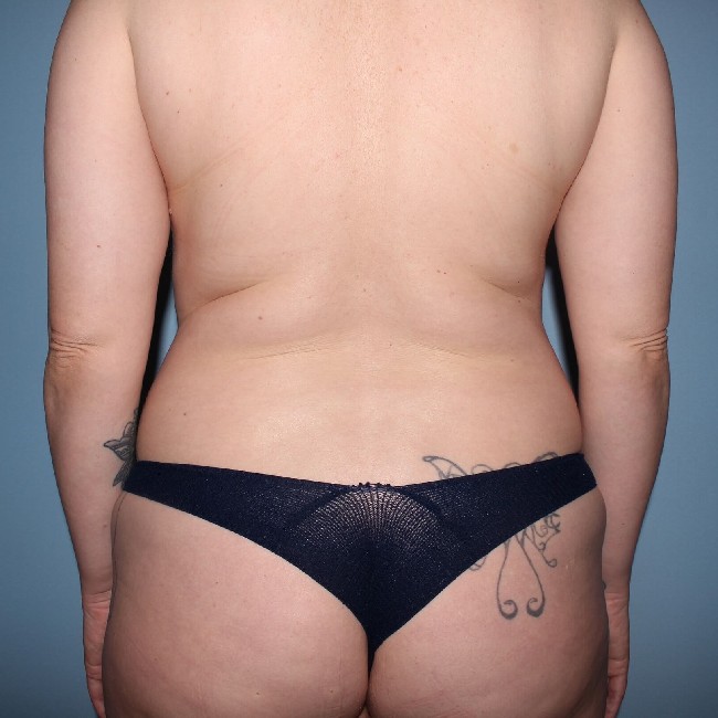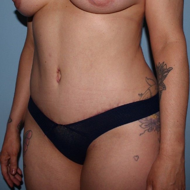 She underwent full abdominoplasty with liposuction of the flanks and abdomen. Her recovery was enhanced by using Exparel intraoperatively, which reduces postoperative pain. She was changed from an abdominal binder to a step-down compression garment at 1 week postoperative. Return to normal daily activities is encouraged over the next several weeks and is guided by the patient’s individual recovery. Dr. Lyle encourages light exercises even a few weeks postoperative, such as light arm weights, walking, and even stretching exercises. After 4 weeks, patients can start doing squats and lunges and even consider a treadmill, exercise bike, and even jogging, depending on their wound healing and exercise tolerance. By 3 months, full exercises are encouraged. Sit-ups and formal abdominal work are usually reserved for the 3-month mark, although light core exercises are encouraged at 6 weeks.