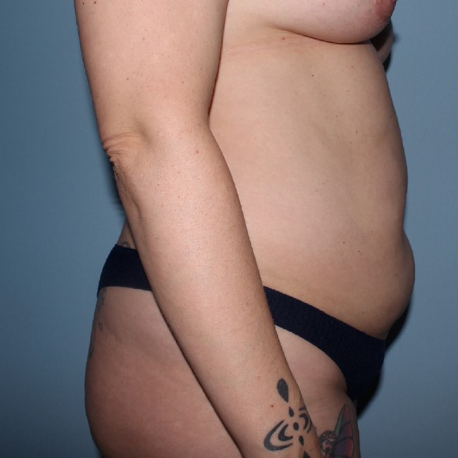 This 36-year-old woman desired improvements in her abdomen. She had 3 children and really had not done much exercise, but was hopeful to start a regimen. Her large abdominal pannus prevented her from feeling comfortable while exercising.