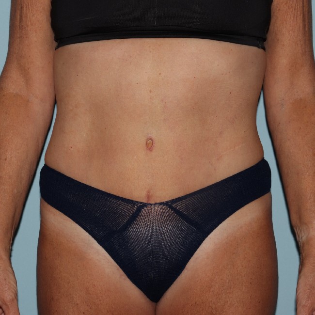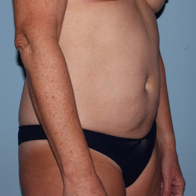 This patient was 56 years old and very fit and athletic, but had had several childbirths that affected her abdominal contour. Although her skin tone was pretty good and she did not have significant pannus, she did have a significant diastasis rectus, which really bothered her, and she was never able to get her abdomen as flat as she would like despite exercise. From a skin tone and fat deposit standpoint, she would’ve done well with liposuction, but it would not have addressed her diastases.