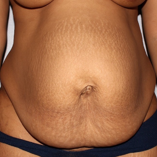 This patient was a 32-year-old mother of 3 children had 3 C-sections and large babies. She had an umbilical hernia repair performed by the general surgeon, but ultimately this recurred. She felt she still looked pregnant well after delivery of her last child and had significant laxity and loose skin of her abdomen.
