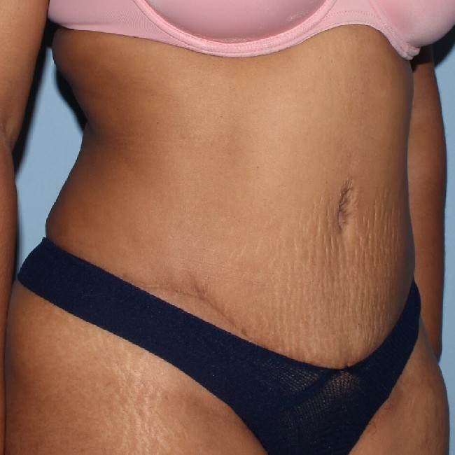 She underwent a full abdominoplasty with liposuction as well as repair of her umbilical hernia at the time of the diastasis repair.