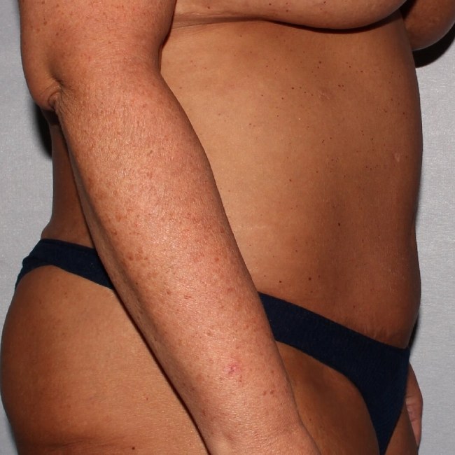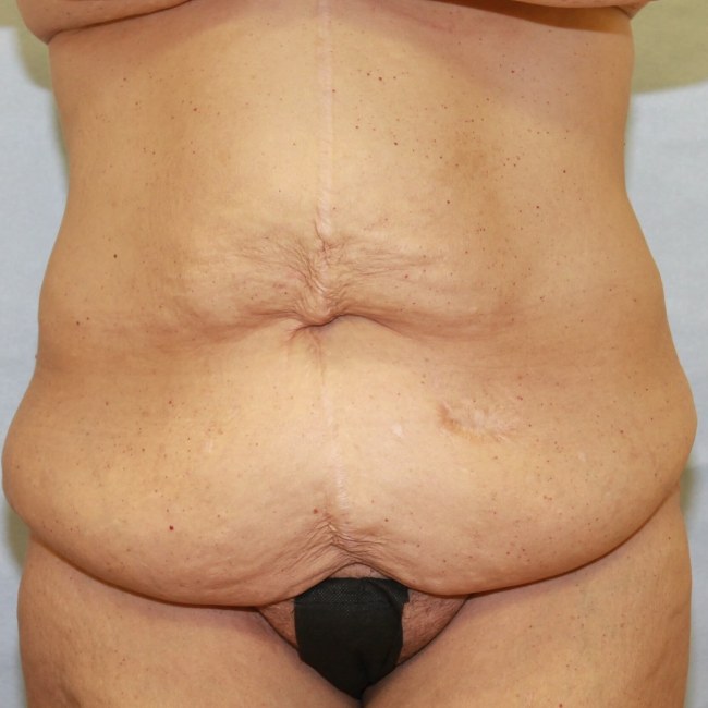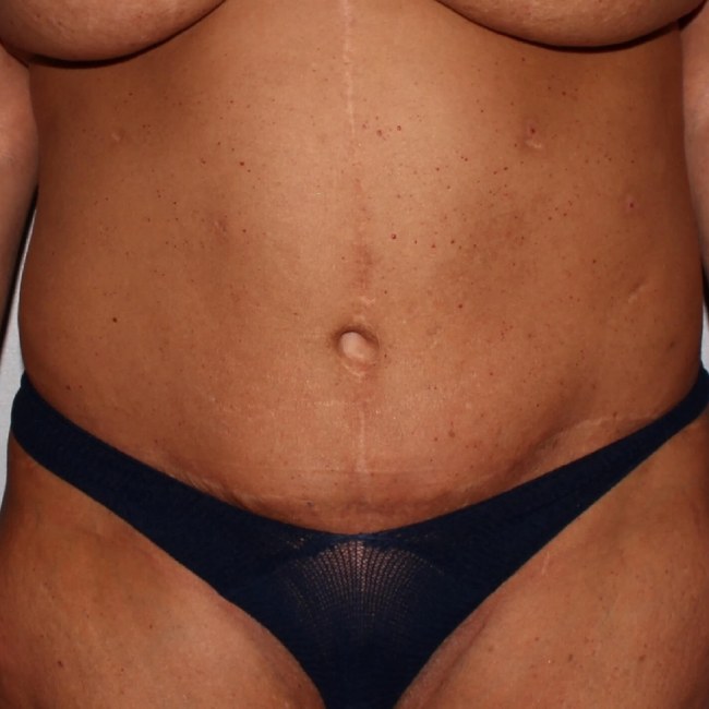 The patient underwent full abdominoplasty with some liposuction of the flanks, but did not have skin excess removed centrally.