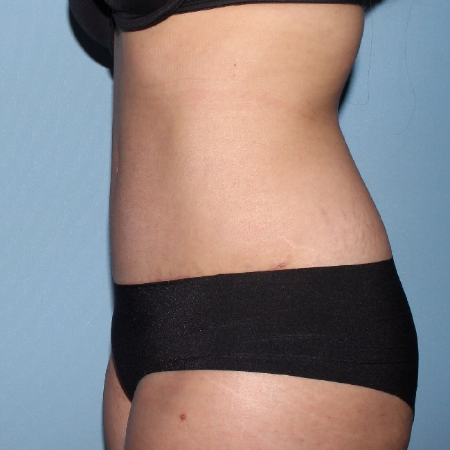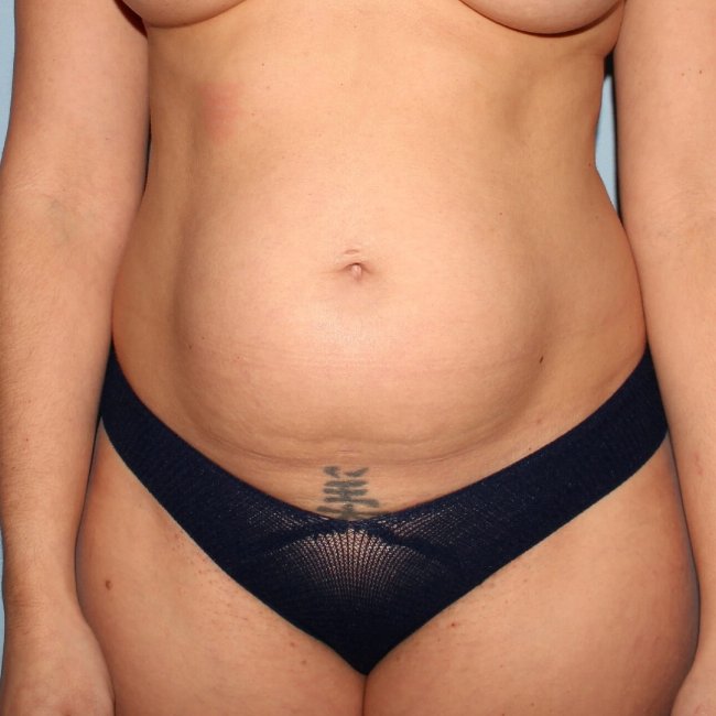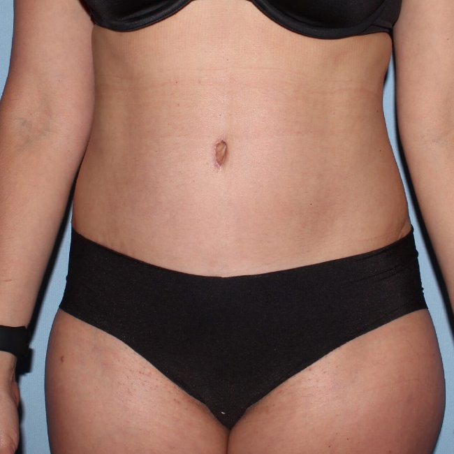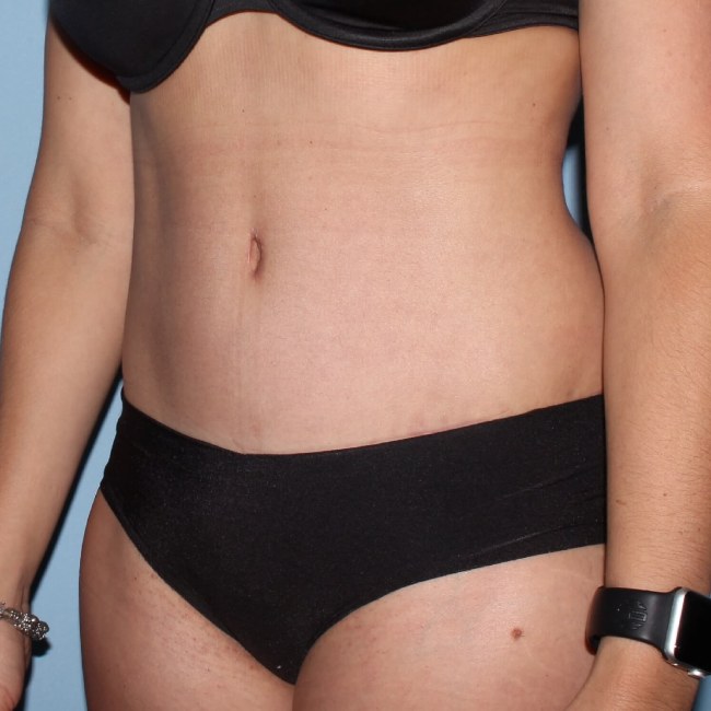 She underwent a standard abdominoplasty with diastasis repair. A diastasis recti is an excessive stretching and loosening of the midline fascia which is the normally tough covering that encases abdominal musculature. During pregnancy this gets stretched and frequently does not rebound. Women are left with loose protuberant abdominal appearance which is very difficult to improve upon with exercise. Dr. Lyle uses Exparel during surgery, which is a long-lasting numbing medicine that really helps the discomfort associated with a diastasis repair.